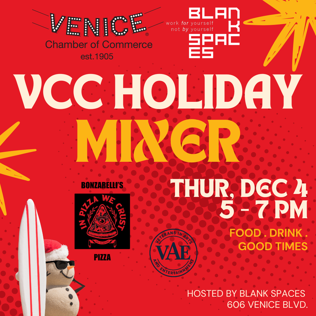 Join us for an unforgettable evening at our Holiday Mixer, hosted by BLANKSPACES, on Thursday, December 4th, from 5-7 pm. Enjoy a relaxed and stylish atmosphere while connecting with Venice Chamber members and prospective members.